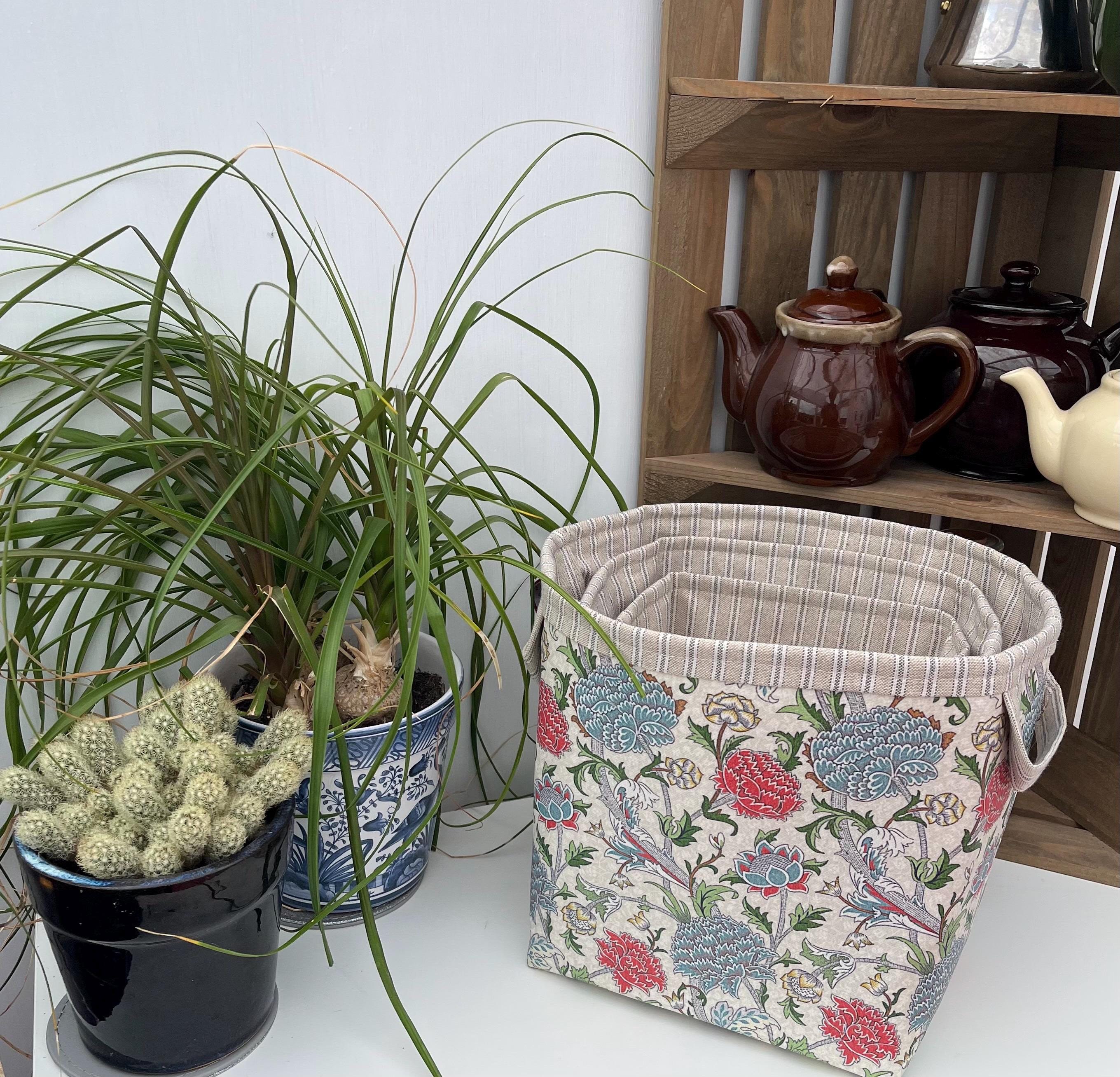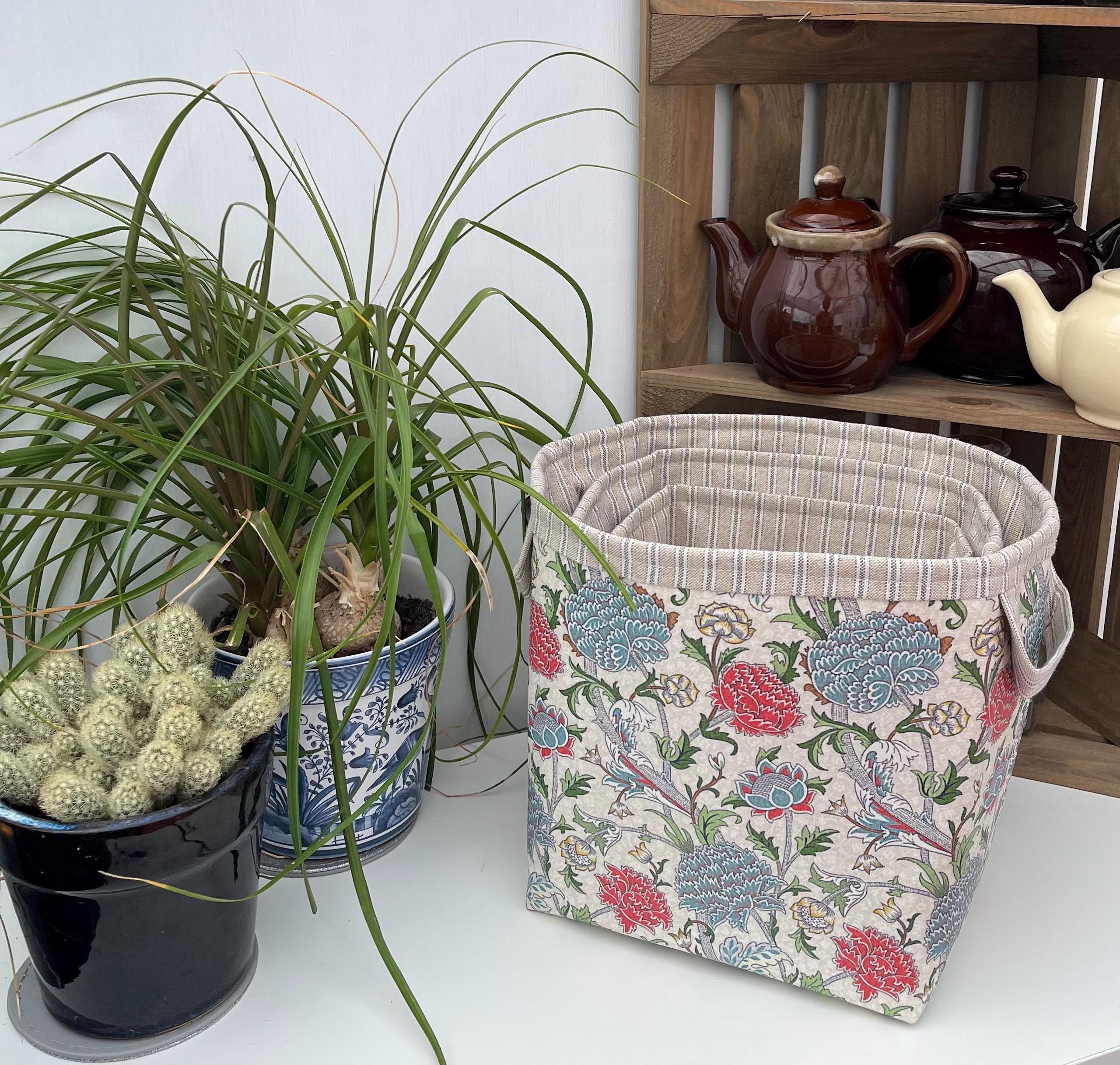 Storage Basket Fabric Oilcloth William Morris Cray Peonies Ex-large