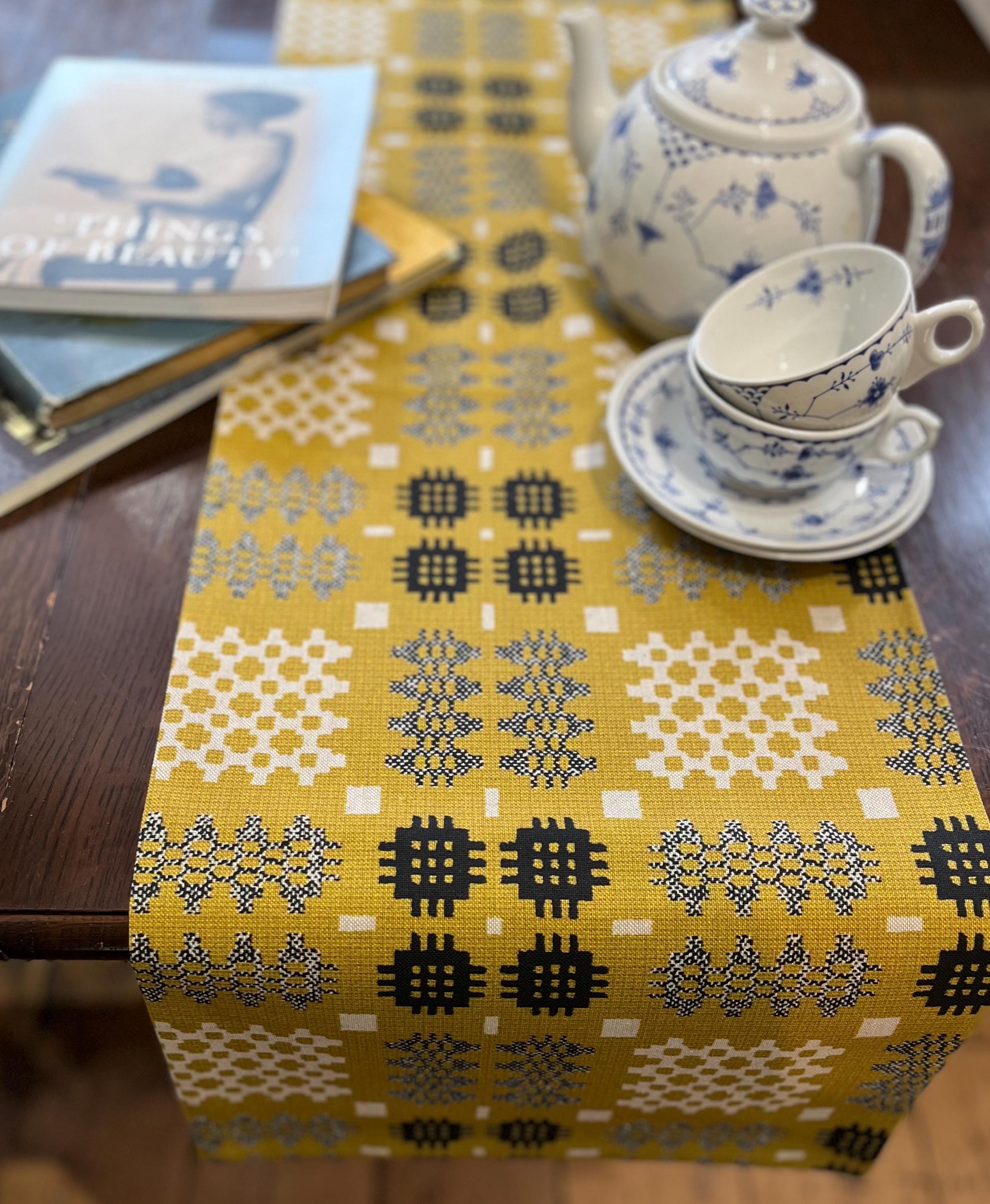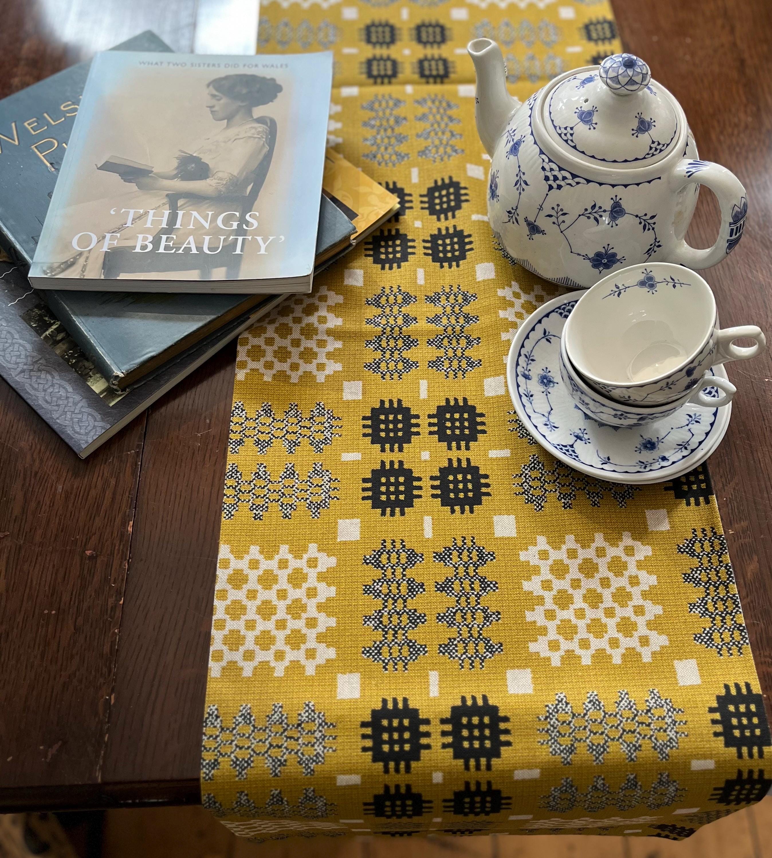 Table Runner Welsh Tapestry Print Mustard & Grey (6ft/ 180cm)