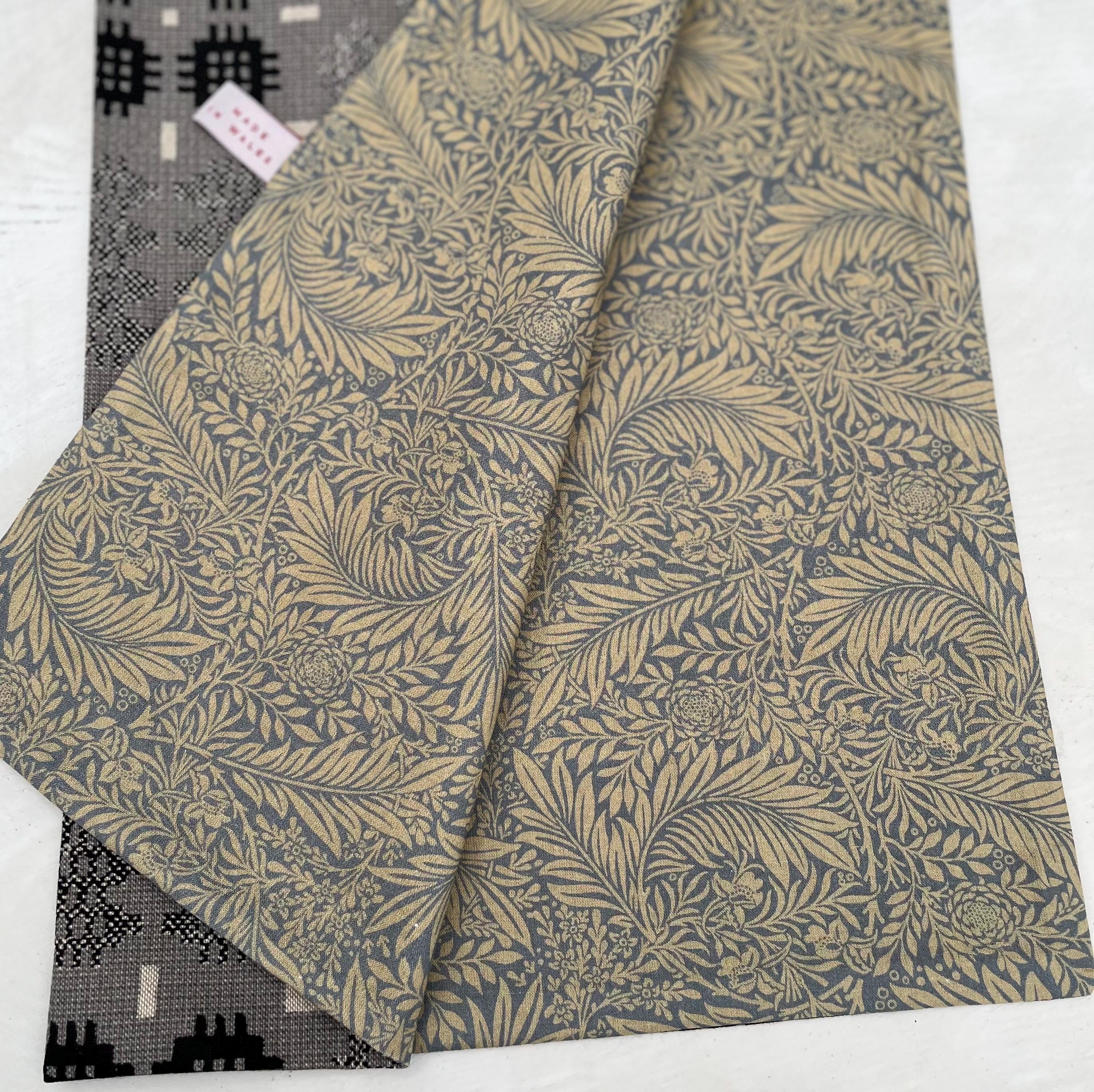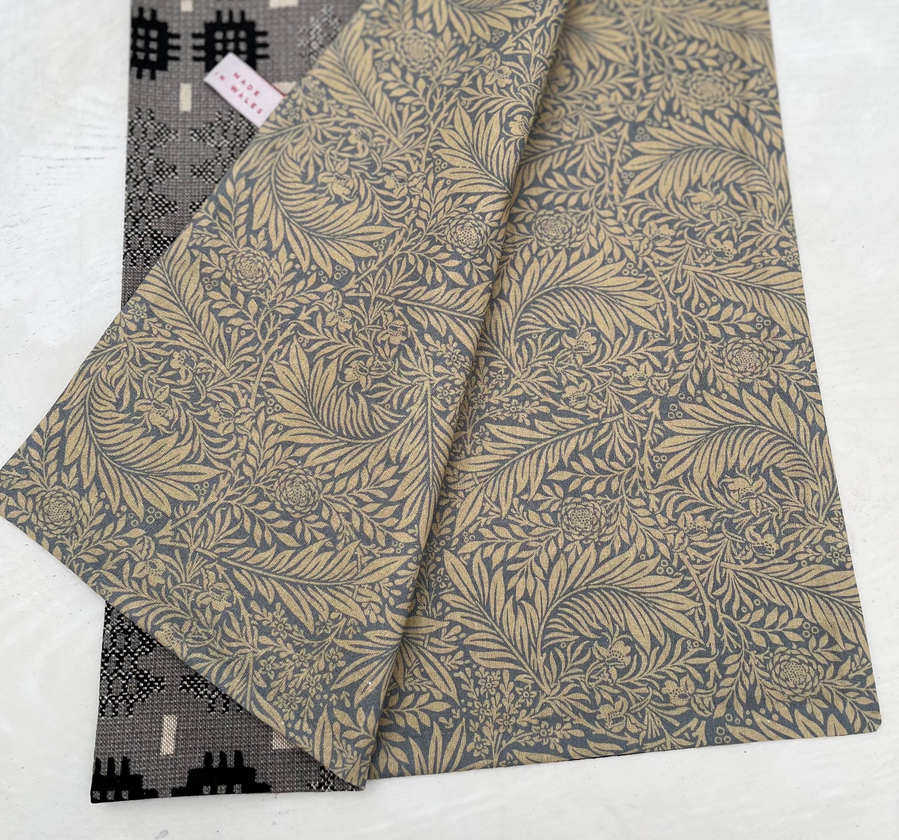 The runner is made in a Welsh tapestry print cotton mix fabric and a beautiful William Morris print, larkspur, cotton on the reverse.