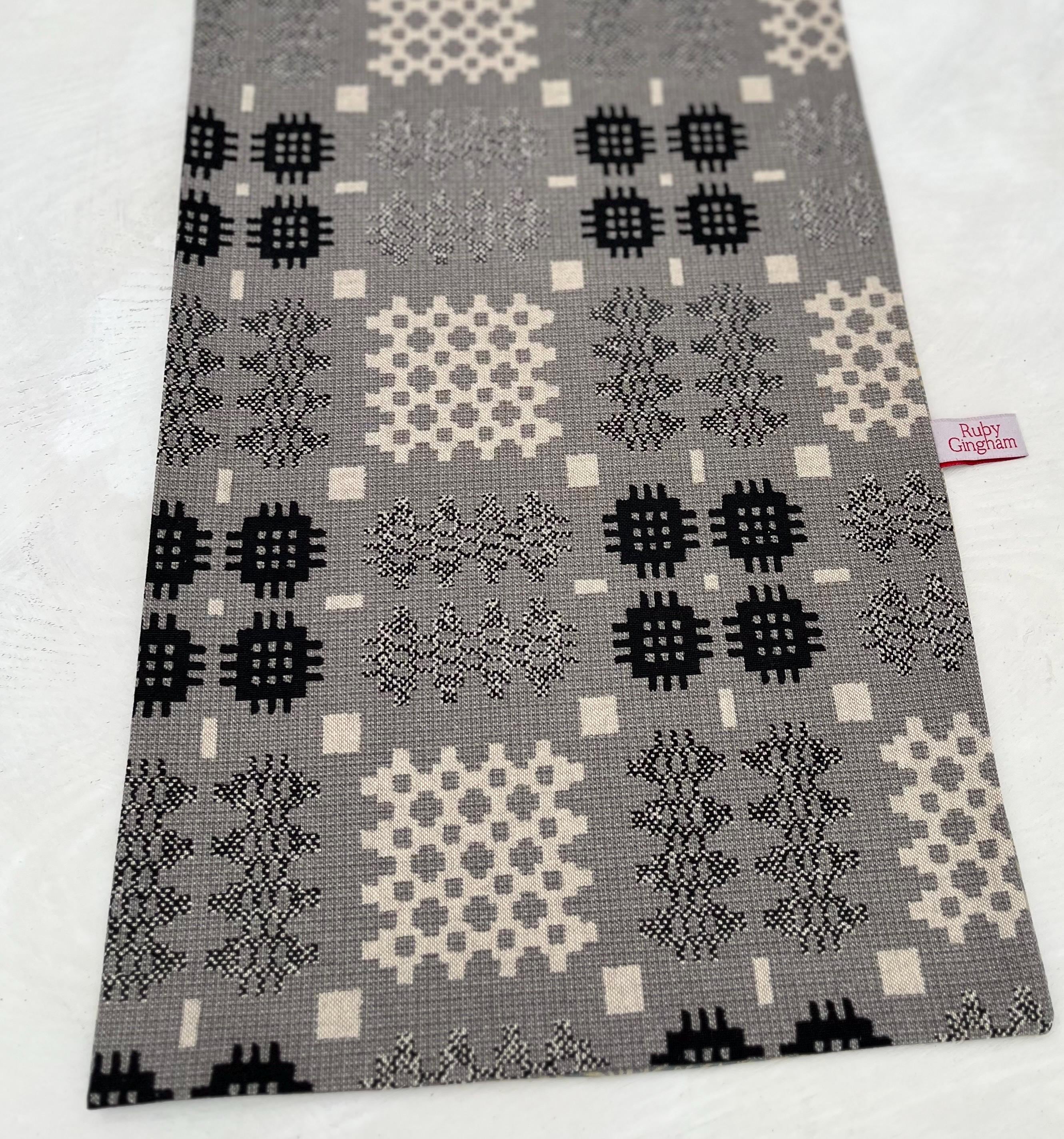 Table Runner Welsh Tapestry Print Grey & Grey William Morris Larkspur (for 6ft/ 180cm)